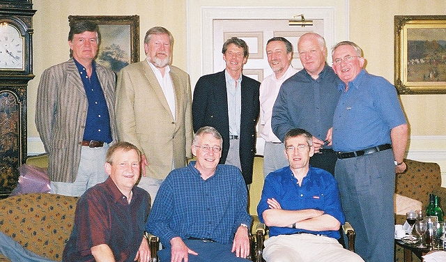 We came up with a list of 34 names, which we think was the definitive class list. We were soon joined in our research by two other classmates, David Beattie and Malcolm (Plum) Chalmers.Within six months we had traced some reference to all but three members of the class - one further classmate unfortunately having died in an accident whilst still attending the school. Amongst the former classmates there are four professors, one of Mathematics in America, one of German in Canada, one of French in France and one of Biology here in England. We appear to only have one solicitor who is currently retired and living in style in Grand Cayman, having sold his firm. We have one Chief Executive and rather sadly three accountants! However, the most popular profession for the boys was teaching, as, in addition to the four professors, there are at least four teachers amongst us. We have one architect, a couple of entrepreneurs and others who of course might understandably wish to retain their privacy. Probably the most unusual post currently filled by any of the former classmates is that of Receiver General at Canterbury Cathedral.We then decided to try and set up a mini reunion and this was arranged for Saturday 8 June 2002 and held at Shelley’s Hotel in Lewes. Due to a combination of Christenings, weddings and hospital operations several that had hoped to make it were unable to do so but nine former pupils met for lunch and I think a good time was had by one and all. Attached with this summary a photograph of the nine who, in the order they appear in the photo from left to right were: standing Alan Butcher, Duncan Greenland, Ian Stopps, Adrian Frost, Tim Martin, and Alastair Stewart and seated Malcolm Chalmers, Alan Voyce and David Beattie. Another meeting of the organisers is planned for November and we will try and set up another mini reunion for 2003. If any other former classmates have similar ideas and would like more detailed information as to how we set about the tracing of former classmates, please e-mail me and I will be in touch.
